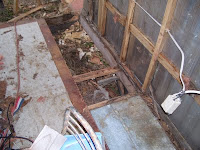 A close up of the back corner. You can see how the end of the edge joist is rotted away. A portion of the rotted flooring has been removed, much like I did on the first section I repaired earlier.